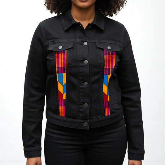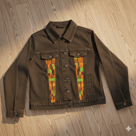 Customizable Kente & Africa Map Denim Jacket – Design Your Heritage