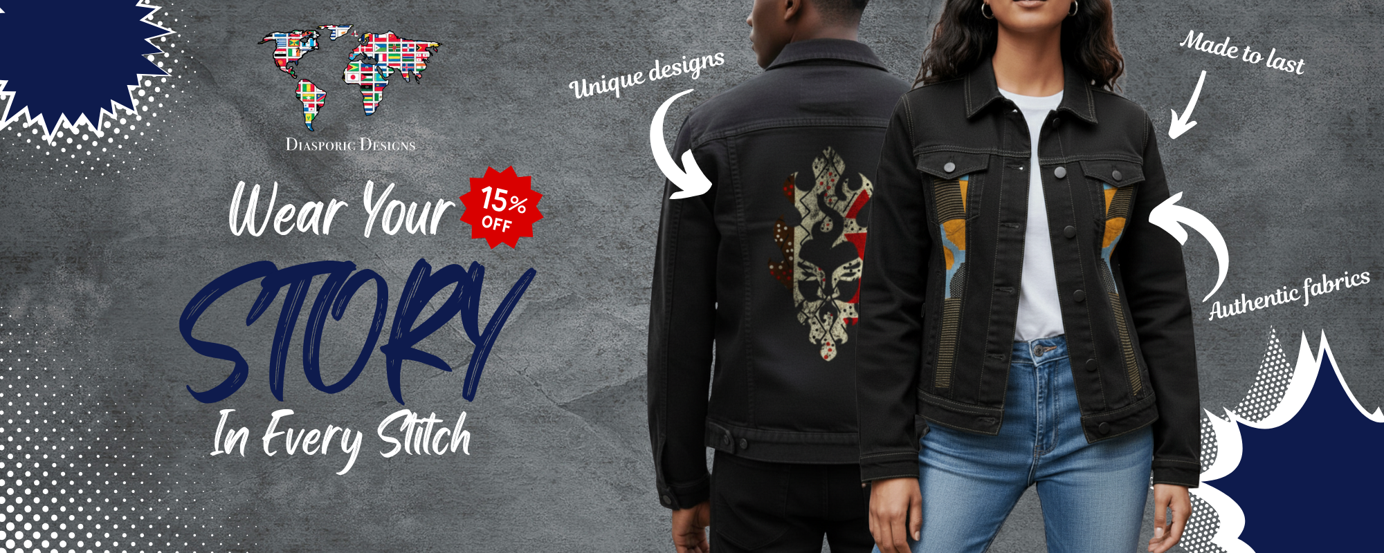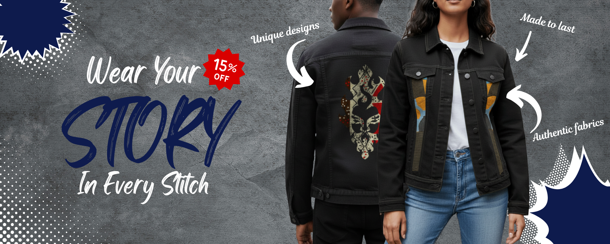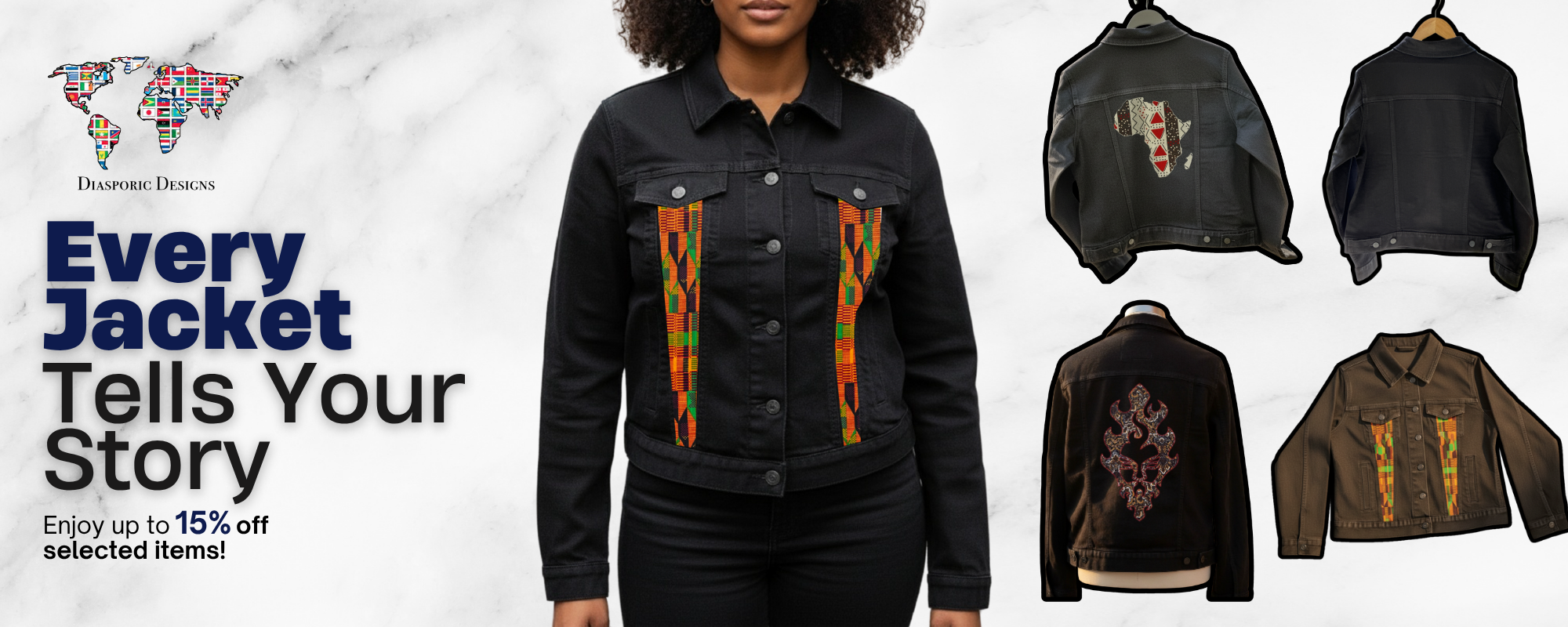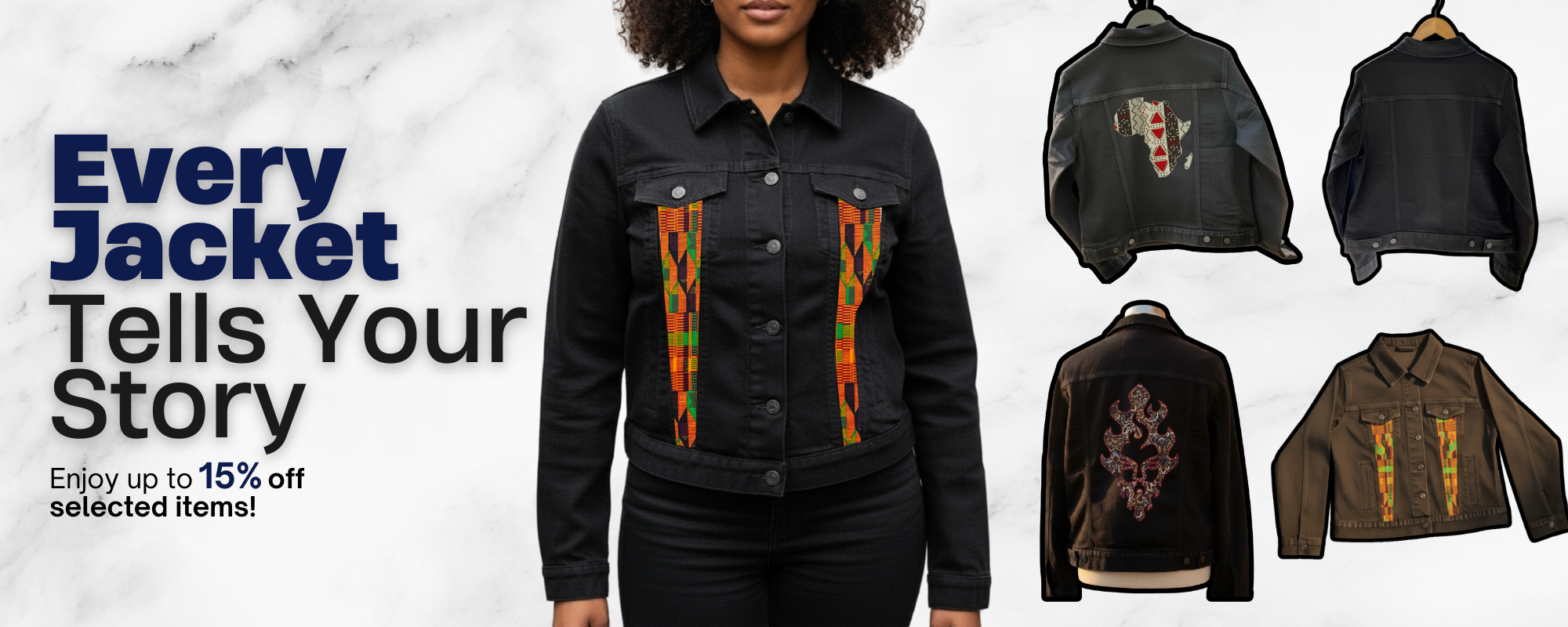 Customizable Kente & Africa Map Denim Jacket – Design Your Heritage